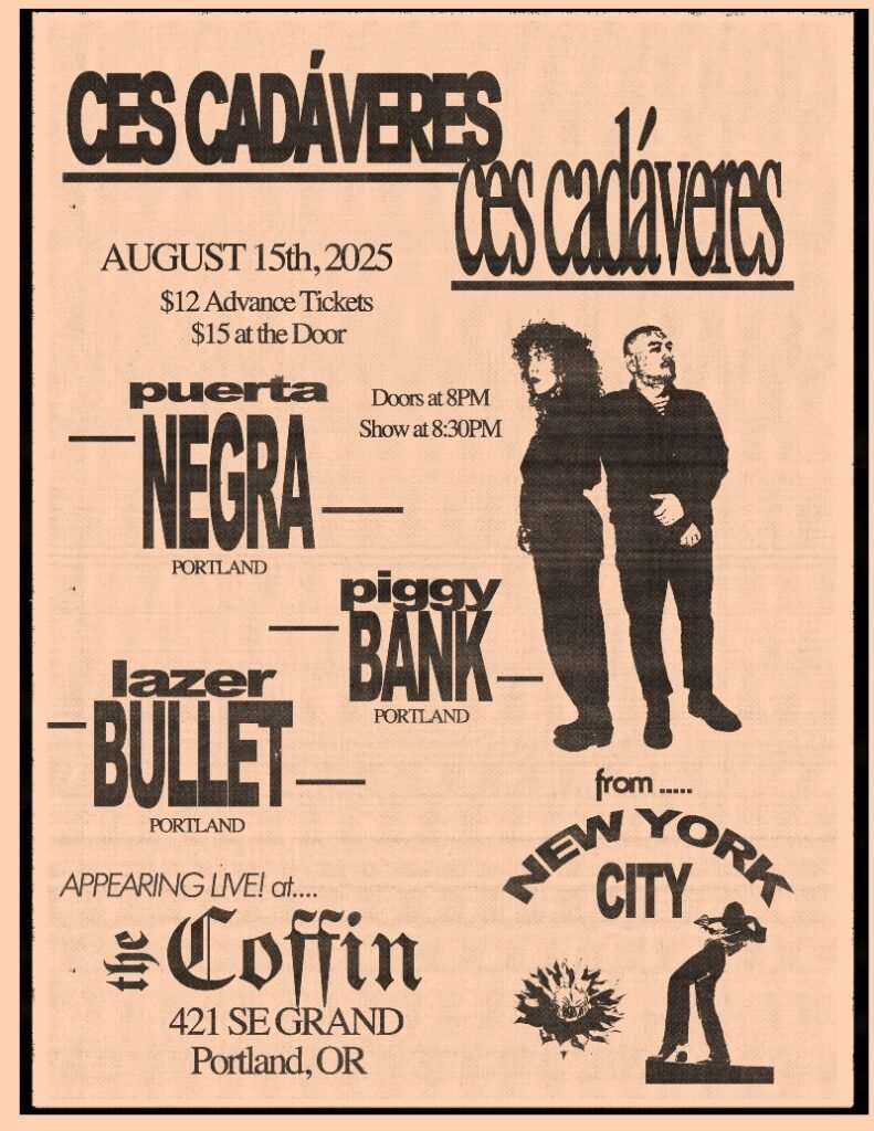 Author Shows@doomtownpdx.comPosted on August 15, 2025August 20, 2025Categories Goth, Punk, SynthTags Ces Cadaveres, Coffin Club, Lazer Bullet, Piggy Bank