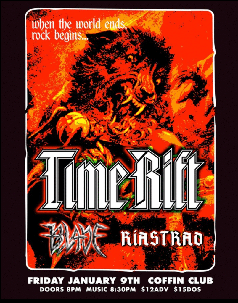 Friday Jan 9th at Coffin Club Time Rift BladeRiastrad8PM // $12 adv // $15 // DOS 21+Coffin Club421 Se Grand